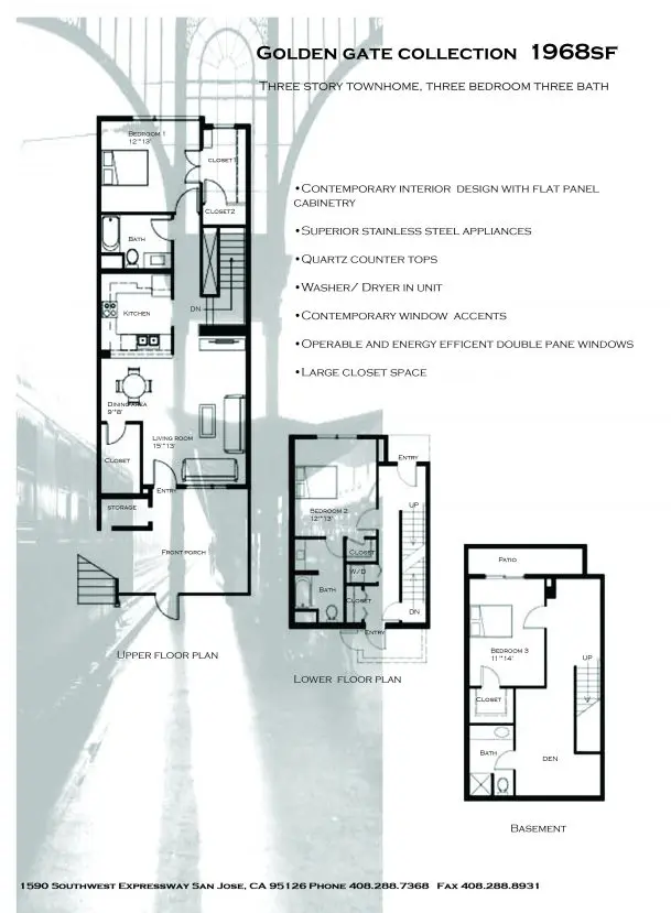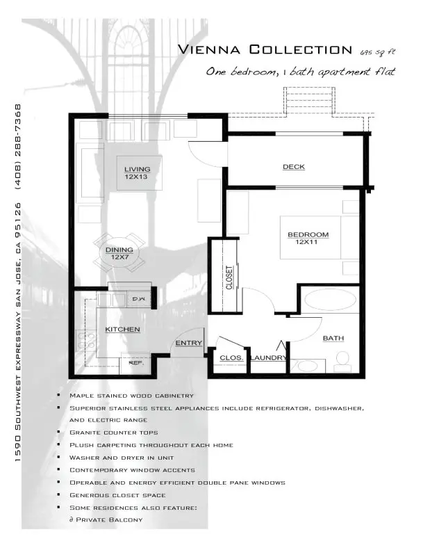 • Maple-stained wood cabinetry • Superior stainless steel appliances including: refrigerator, dishwasher and gas or electric range • Granite counter tops • Plush carpeting and tile throughout • Washer and dryer in unit • Central heat & A/C • Vaulted ceilings • Contemporary window accents and treatments • Operable and energy efficient double pane windows • Generous walk-in closets • Illuminating natural light