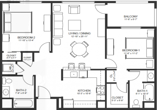 1 Bed - 2 Beds